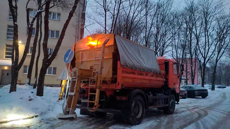 В связи с гололедицей, коммунальные службы Партизанского района проводят обработку дорожного покрытия. Задействовано: